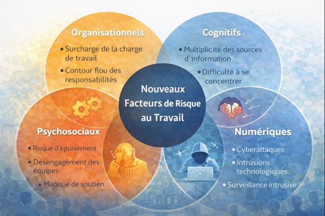 Le travail change profondément. Automatisation, intelligence artificielle, travail hybride, sous-traitance étendue et pression sur la performance transforment les situations de travail réelles. Ces évolutions font apparaître de nouveaux facteurs de risque :